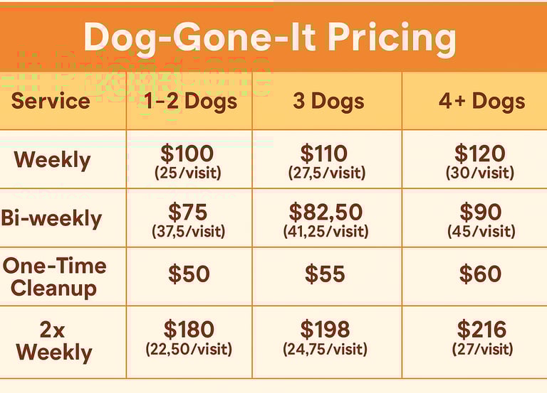 Our flexible plans include weekly, bi-weekly, or custom schedules tailored to your property's needs and pet activity.